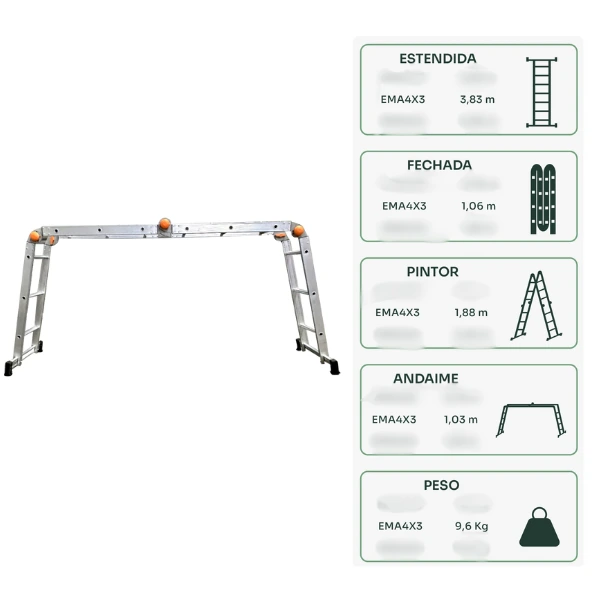 – Peso da escada: 9,6kg
