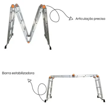 Escada Multiuso Articulada 12 Degraus 4X3 De Aluminio – Detalhes Laranja