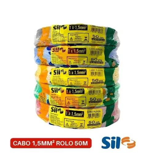 O Fio Cabo Elétrico 1.5mm Sil 750V 50M é formado por fios de Cobre, têmpera mole, classe 4 até a seção nominal de 6mm² e classe 5 a partir da seção 10mm² (extraflexível) atendendo a norma ABNT NM 280.